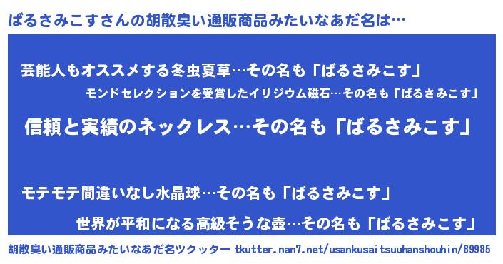| 料理風あだ名 | 『ばるさみこすごはん』 |