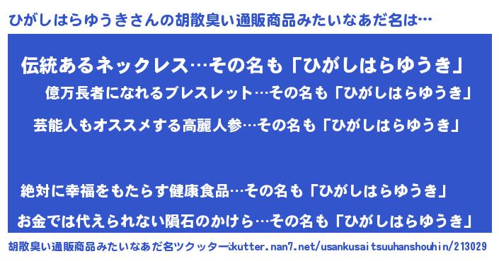 | 意味不明あだ名 | 『自称ひがしはらゆうき』 |