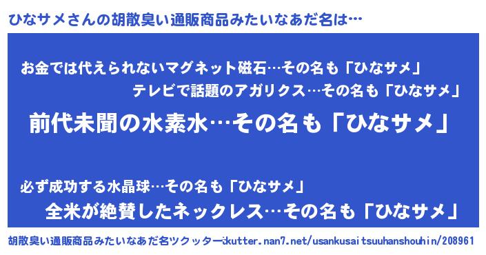 | ヘコむあだ名 | 『ひなサメ(苦笑)』『ひなっ子』 |