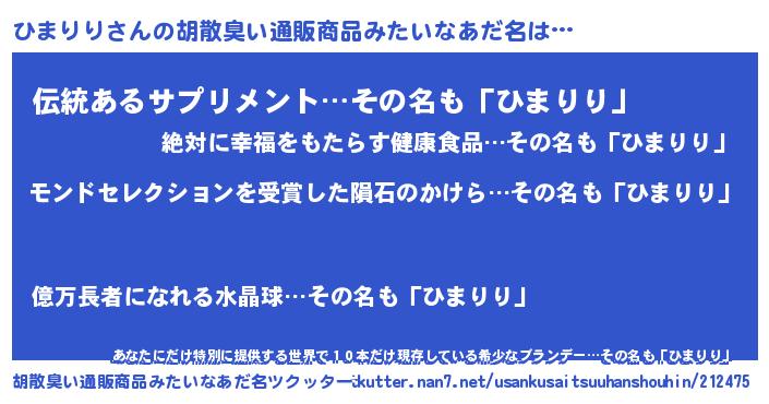 | ヒーロー風カッコイイあだ名 | 『慈愛の使者ひまりり』『幻影騎士ヒマ』 |