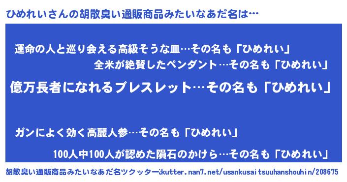 | 自動車の名前っぽいあだ名 | 『ヒメティマ』『ヒスラー』『ヒンR』 |