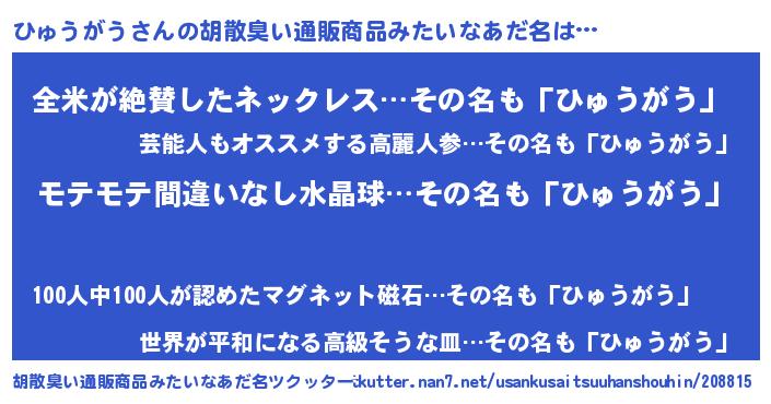 | ヒーロー風カッコイイあだ名 | 『スーパーヒュウガウ』『銀牙騎士ヒュ』 |