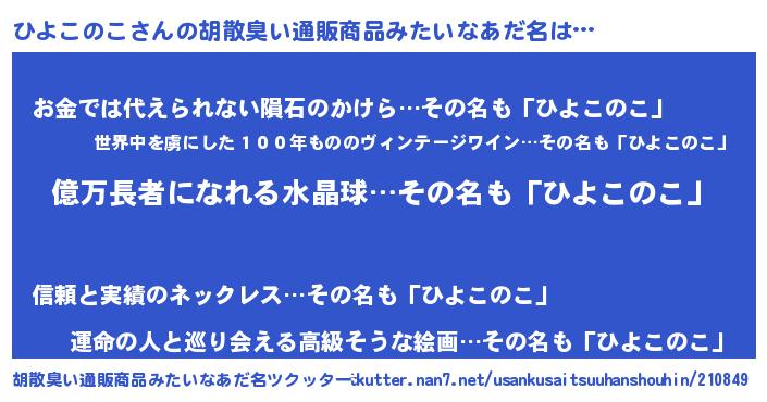 | 男性向けラノベタイトル風あだ名 | 『ヒヨコノコアートオンライン』 |