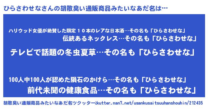 | 伝説のあだ名 | 『古より伝わる勇者ひらさわせな』 |