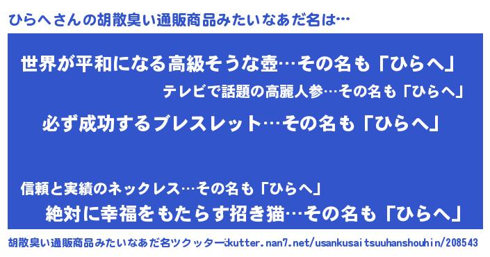 | ヘコむあだ名 | 『ひらにー』『酢こんぶ』『ひらを』 |