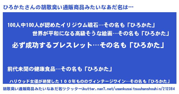 | ヒーロー風カッコイイあだ名 | 『スーパーヒロカタ』『仮面ヒロダー』 |