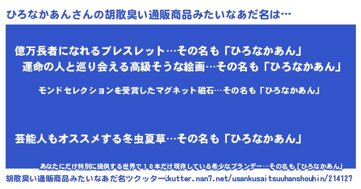 | 肩書あだ名 | 『ひろなかあん教授』『ひろなかあん教官』 |
