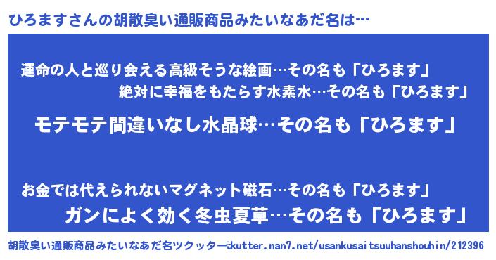 | 恥ずかしいあだ名 | 『プリティーひろます』『ひろっちょ』 |