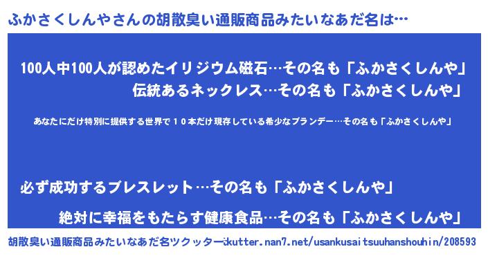 | ヘコむあだ名 | 『ふかさくしんや(苦笑)』『ふかぷりん』 |