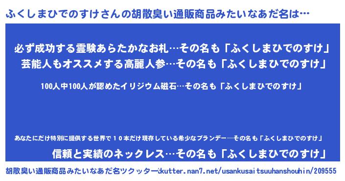| 意味不明あだ名 | 『眠気覚ましガムふくしまひでのすけ味』 |