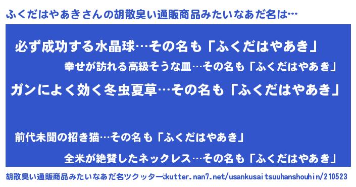 | ヘコむあだ名 | 『ふくっふぃ~』『ふく太郎』 |