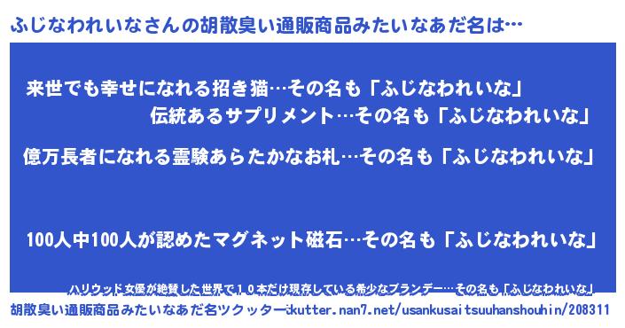 | ヘコむあだ名 | 『ふじもー』『ふじなわれいな(笑)』 |