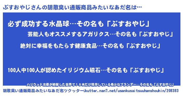 | 意味不明あだ名 | 『永久保存ぶすおやじ』『自称ぶすおやじ』 |