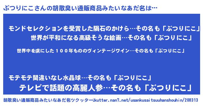 | 意味不明あだ名 | 『住所不定無職ぶつりにこ(1歳)』 |