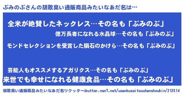 | 男性向けラノベタイトル風あだ名 | 『ぶみのぶ~年齢イコール彼女いない歴の魔法使い~』 |