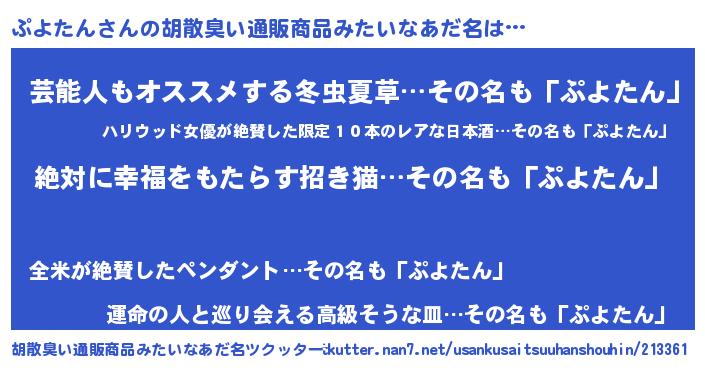 | 意味不明あだ名 | 『永久保存ぷよたん』『自称ぷよたん』 |