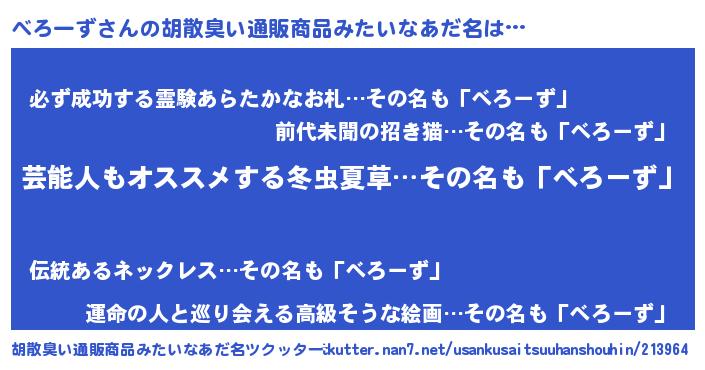 | 肩書あだ名 | 『べろーずプロデューサー』『べろーずCEO』 |