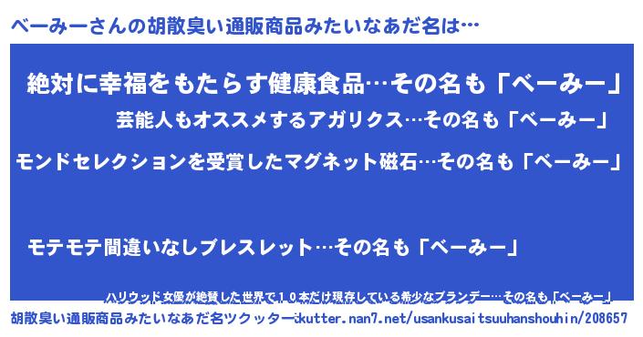 | ヘコむあだ名 | 『べーみー(小並感)』『べーにー』 |