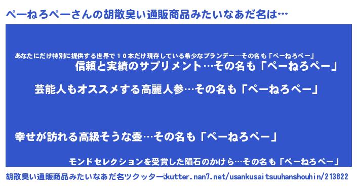 | 意味不明あだ名 | 『自称ぺーねろぺー』 |