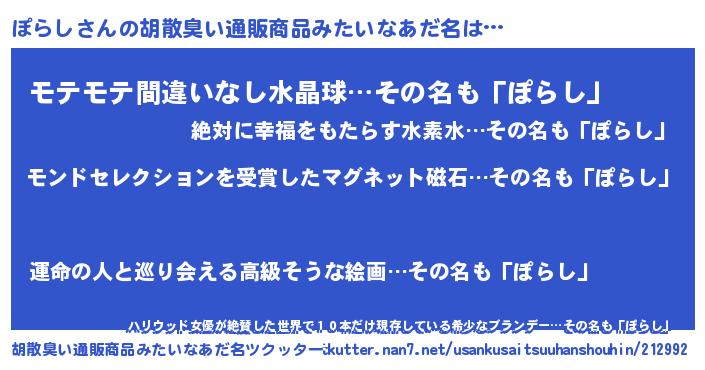 | ヒーロー風カッコイイあだ名 | 『天空の使者ぽらし』『スーパーポラシ』 |