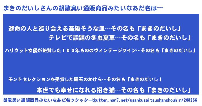 | 意味不明あだ名 | 『住所不定無職まきのだいし(5歳)』 |