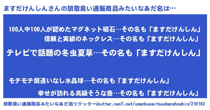 | 意味不明あだ名 | 『自称ますだけんしん』 |