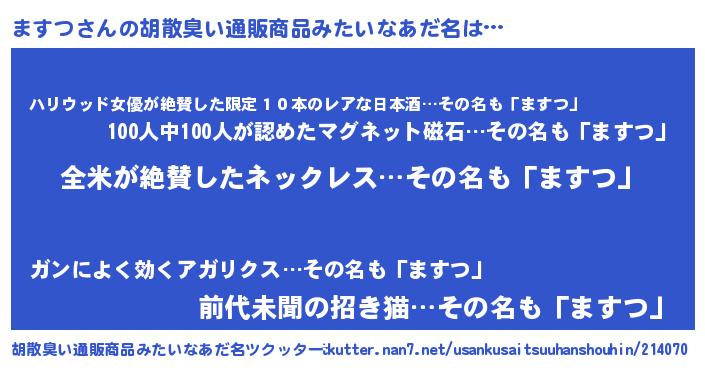 | 女子向けラノベタイトル風あだ名 | 『ますつ様がみてる』 |