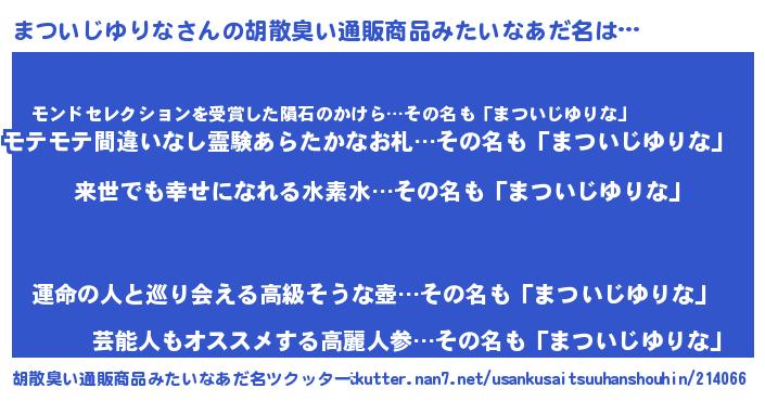 | 肩書あだ名 | 『まついじゆりな上級大将』 |