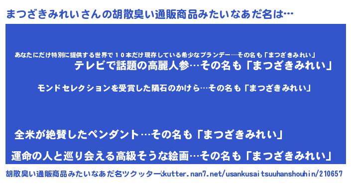 | 意味不明あだ名 | 『眠気覚ましガムまつざきみれい味』 |
