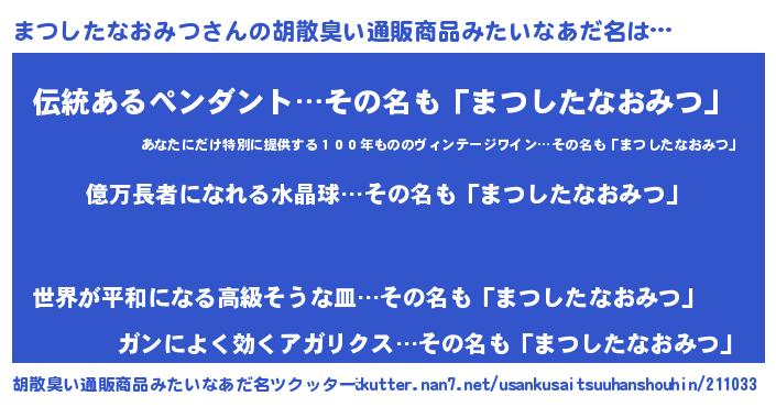 | 恥ずかしいあだ名 | 『プリティーまつしたなおみつ』 |