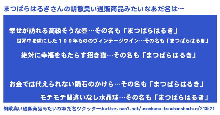 | 意味不明あだ名 | 『永久保存まつばらはるき』 |