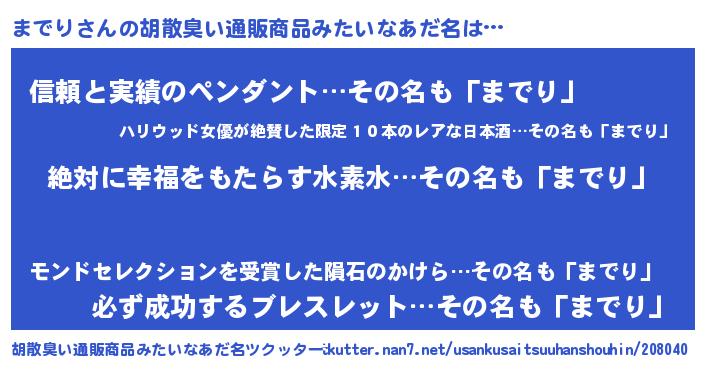 | ヘコむあだ名 | 『までり(震え声)』『までぷりん』 |