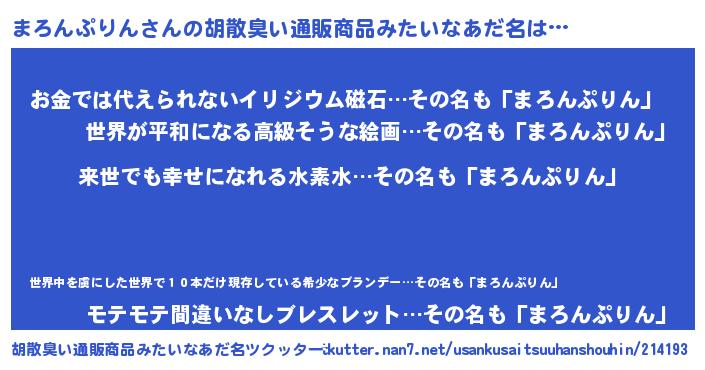 | ヒーロー風カッコイイあだ名 | 『ネオマロンプリン』『仮面マロダー』 |