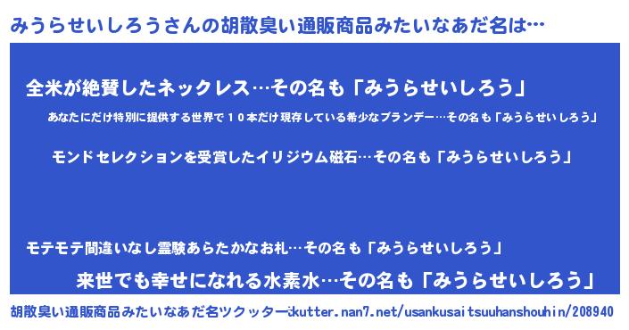 | ヘコむあだ名 | 『みうっ子』『みうらせいしろう(笑)』 |