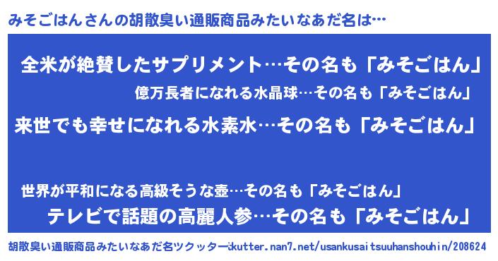 | ヘコむあだ名 | 『みそごはん(遠い目)』『みそお』 |