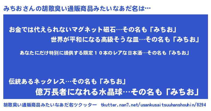 | 男性向けラノベタイトル風あだ名 | 『この素晴らしい世界にみちおを!』 |
