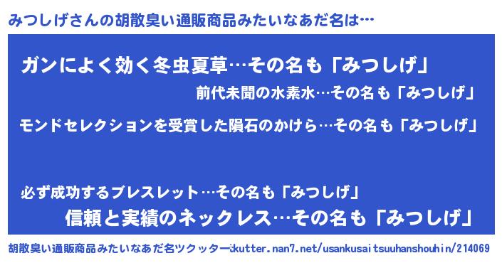 | ヘコむあだ名 | 『みつっぺ』『みつしげ(震え声)』 |