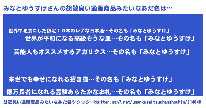 | 意味不明あだ名 | 『自称みなとゆうすけ』 |