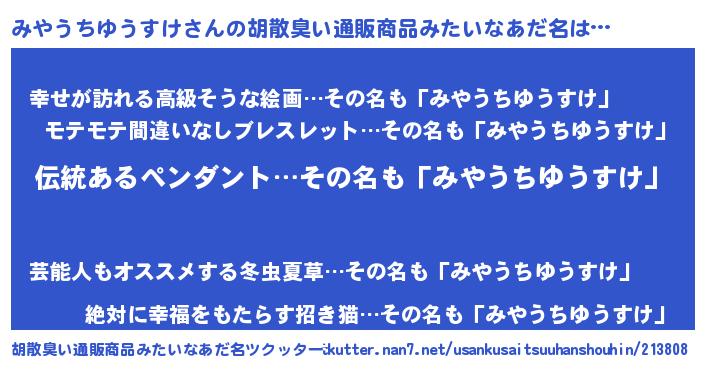 | 意味不明あだ名 | 『とにかく怪しいみやうちゆうすけ』 |