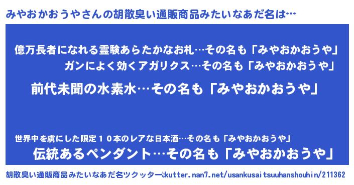 | 意味不明あだ名 | 『永久保存みやおかおうや』 |