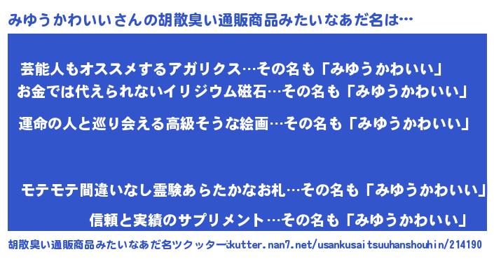 | 意味不明あだ名 | 『みゆうかわいいフォーエバー』 |
