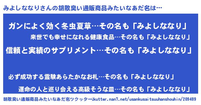 | 意味不明あだ名 | 『とにかく怪しいみよしななり』 |