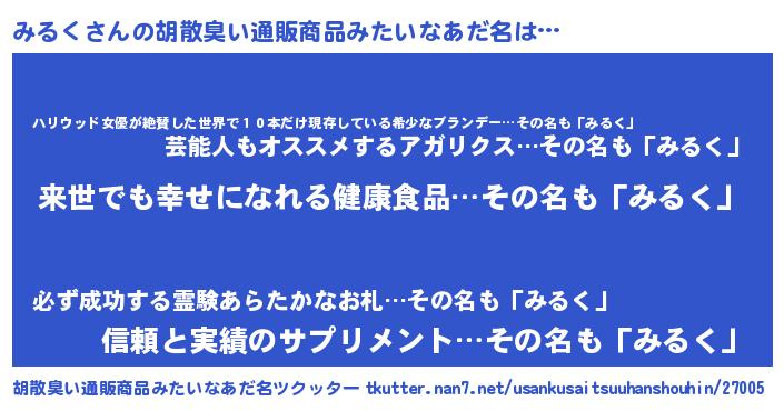 意味不明あだ名 | 『永久保存みるく』『自称みるく』 |