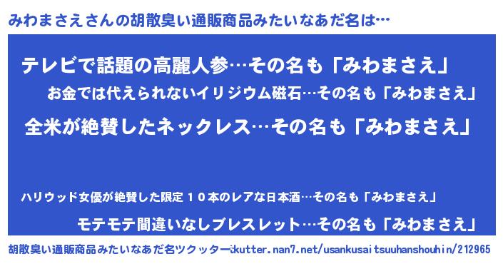 | 意味不明あだ名 | 『とにかく怪しいみわまさえ』 |