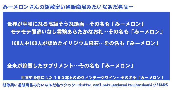 みーメロンさんの胡散臭い通販商品みたいなあだ名をツクッター!