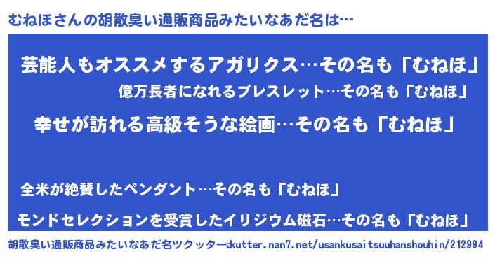 | 意味不明あだ名 | 『むねほフォーエバー』『自称むねほ』 |