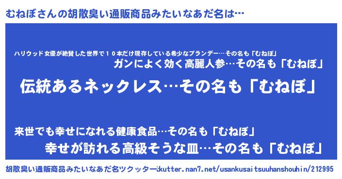 | 意味不明あだ名 | 『とにかく怪しいむねぼ』『自称むねぼ』 |