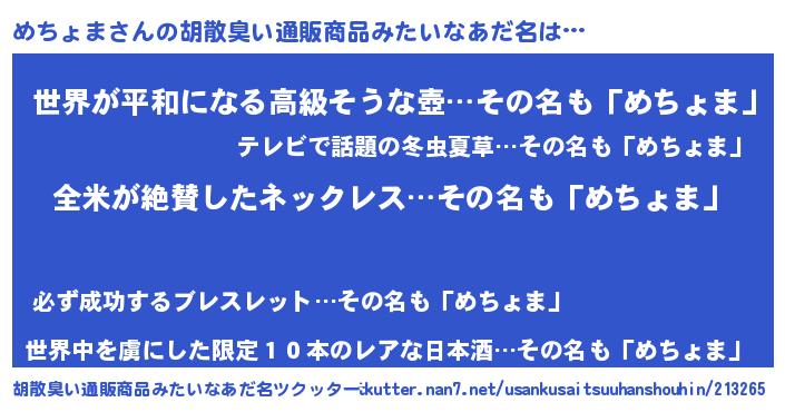| 意味不明あだ名 | 『とにかく怪しいめちょま』 |