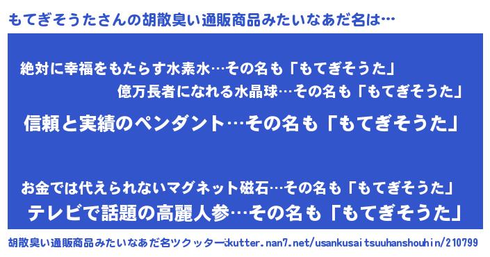 | ヘコむあだ名 | 『もてぷりん』『もてぎそうた(笑)』 |