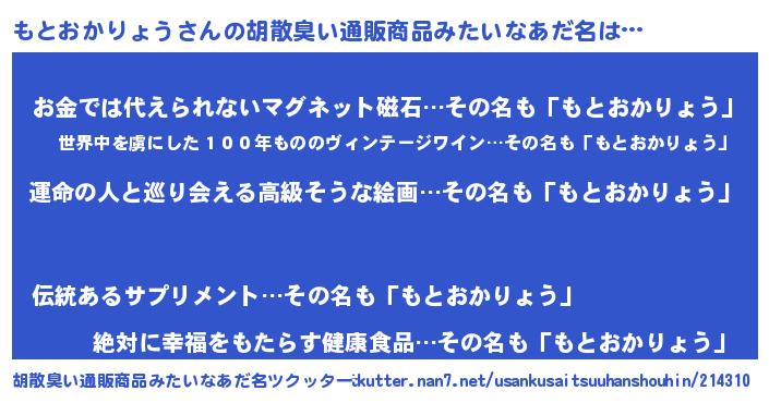 | 肩書あだ名 | 『もとおかりょう総理大臣』 |